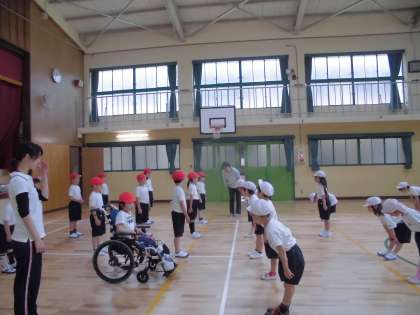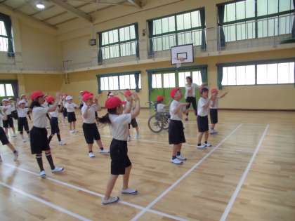 6月の運動会に向けて,各学年が練習を始めています。体育館では1.2年生が合同でダンスを踊っていました。2年生が1年生をリードする姿が微笑ましいです。1年生と合同で学習することで,2年生が大きく成長するように思いました。