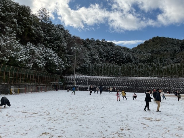 朝から雪が降り、運動場は一面の雪景色となりました。中間休みには、子どもたちが元気いっぱいに走り回り、雪だるまを作ったり雪合戦をしたりして楽しんでいました。「冷たいけどふわふわして気持ちいい!」と笑顔で話す姿が印象的でした。また、メダカの水槽には厚い氷が張り、「こんなに大きな氷だ!」と驚きながら持ち上げる子もいました。冬ならではの自然に触れ、子どもたちは寒さを忘れて夢中になっていました。