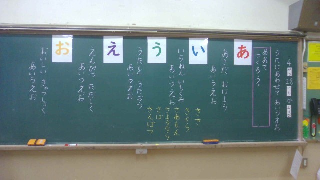 みんなでアイデアを出し合って、高雄小学校1年1組の『あいうえおのうた』を作りました。