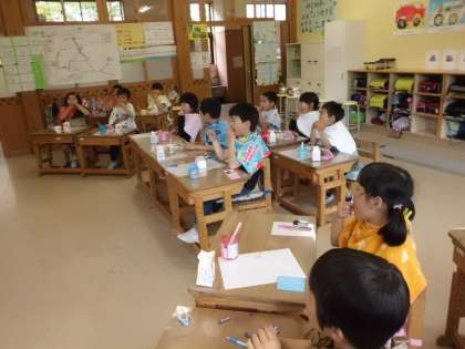いつも給食の後に,歯磨きをがんばっている子どもたち。