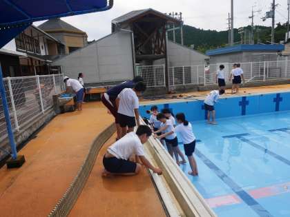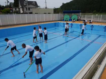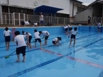 5・6年生 プールをきれいに掃除しました