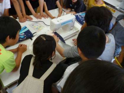 家庭科ではミシンに挑戦しています。講師をお招きして,安全な使い方を学びました。子どもたちは長期宿泊で使用するナップサック作りに,意欲をもって取り組んでいました。
