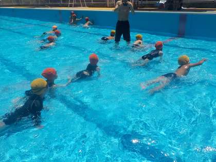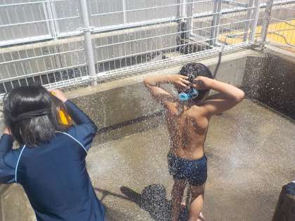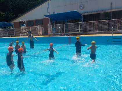 1・2年生とひかり学級は,今年度初めての水泳学習を行いました。