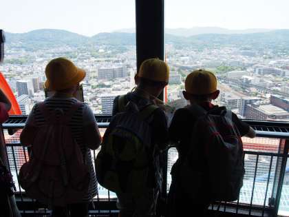 三校合同学習で京都駅方面へ社会見学に出かけました。大きな市場,広い道路,たくさんの人,地下鉄,京都タワーからの景色など初めて体験することが多くとても充実した見学になりました。