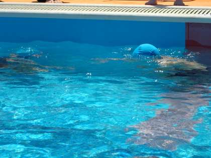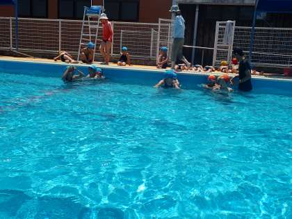 6月19日(月)水位を上げての水泳学習を行いました。水中でのじゃんけん,じゃんけん電車,小石拾い,かに歩き,フープくぐりなど,楽しんで学習していました。