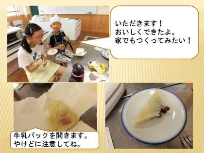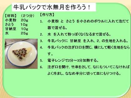 生地を混ぜて,牛乳パックに入れ,注ぎ口をしっかり閉じて