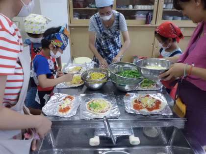 仕上がったピザは,窯で焼いておいしく頂きました。