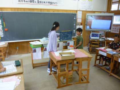 子どもたちは毎日,苗の成長を見守っています。水の深さや,苗の高さ,そして本数など,JAの講師さんから聞いた「中ぼし」にむけて,意識して観察を続けています。