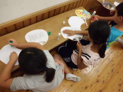 音頭のための団扇も子どもたちの手作りです。団扇をもってやる気満々に声を出していました。今から本番が待ち遠しいです。