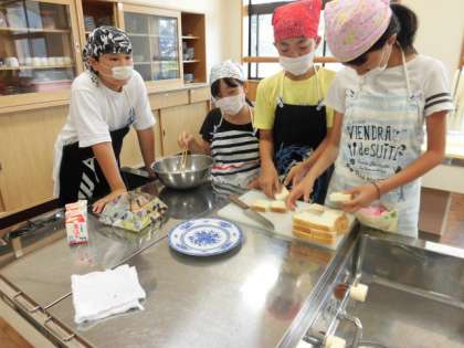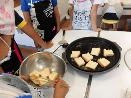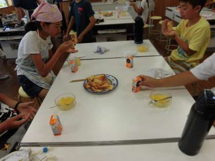 みんな朝早くから目が覚めたようです。朝食はフレンチトーストを作りました。