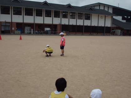 「5歩とびくらべ」では,はじめは「1・2・3・4・5」のリズムで跳ぶことが難しく,走りぬけてしまったり,リズムがあわなかったり・・・と苦労していましたが,回を重ねるごとに上手に跳べるようになりました。