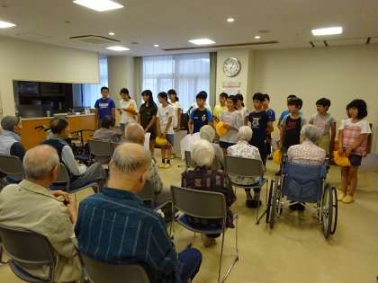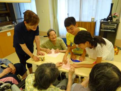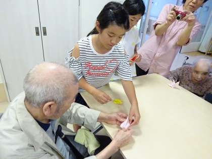 6年生は総合の学習で京北の人や場所,歴史について学習を進めています。今日は,高齢者総合福祉施設しゅうざんの皆さんと交流しました。リコーダーの演奏を聴いてもらったり,一緒に折り紙をして楽しく過ごしました。高齢者の方々にも大変喜んでいただき,あたたかい時間となりました。