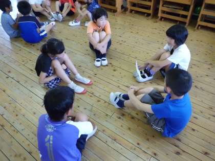 1時間目はグループで「夏の楽しみ」を発表しあいました。地域の夏祭り・家族とのおでかけ・夏休みしかできないことなど,いろいろな楽しみがありました。授業の最後には,各校で練習してきた丹波音頭を披露しました。