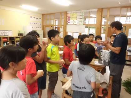 今日はゲストティーチャ—の方に来ていただき,お話を聞きました。