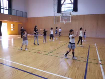動きでは,後向きに3m8歩で歩く練習をしました。