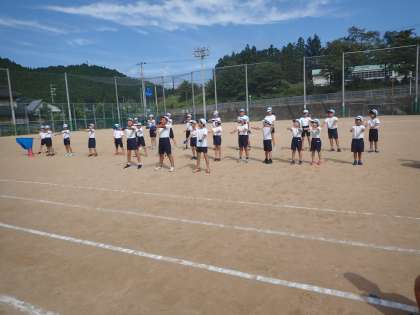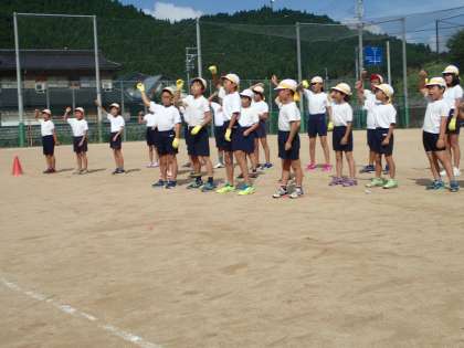 運動会の練習も大詰めです。各色分かれての応援練習,1年生もがんばっています。
