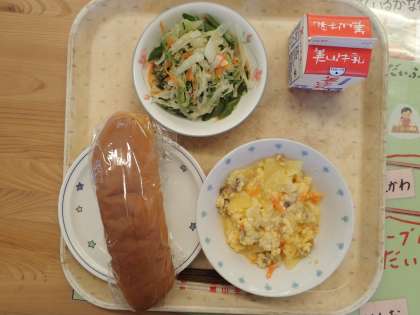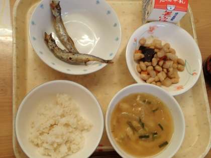 前期の間は,1年生は,他学年より早く「いただきます」をしていましたが,後期からは他学年と同じ時刻に食べ始めるようになりました。きのう,今日,「時間内に残さず食べきる」ことができました。2年生にむけ,いろいろなことができるようにしていきたいです。