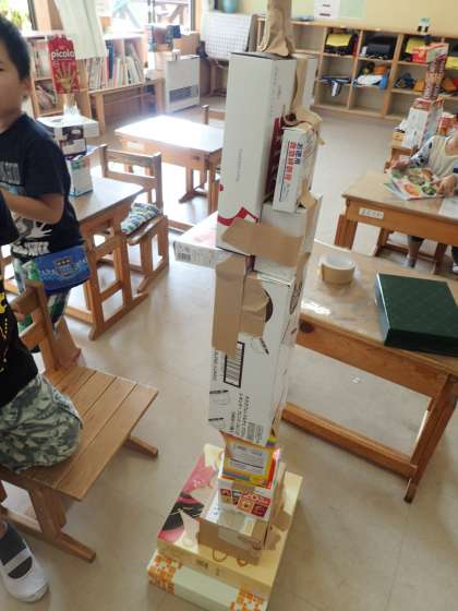 図工の時間,箱を使い,自分達の作ってみたいものをつくりました。動物や乗り物を作る子が多くいました。発想をふくらませ,楽しく活動していました。