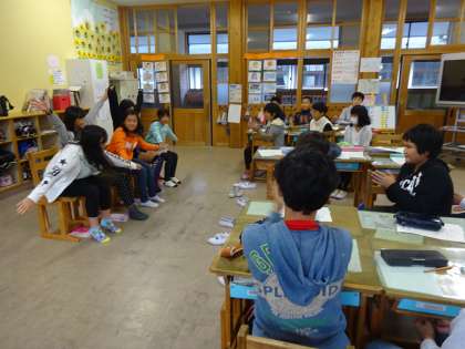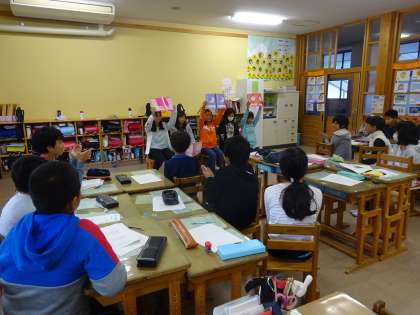 学習発表会に向けて,「演出係」「寸劇係」「ダンス係」に分かれて準備を進めています。それぞれの係がじっくり話し合いながら,責任をもって学級全体に広げていきます。自分たちの思いがだんだん形になってきたので,学習発表会にむけての意欲も高まってきました。