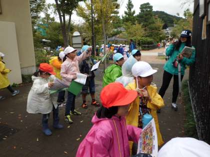 子どもたちの願いが通じたのか,動物園に着くと曇り空になっていました。