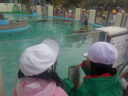 10月13日に1・2年で京都市動物園に行ってきました。京北3小学校の1年生合同班でクイズを解きながら見学をしました。たくさんの動物を近くで見て大興奮の1日でした。