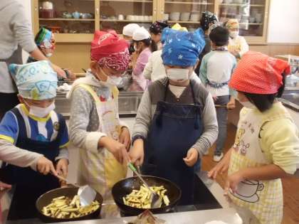 サツマイモを切るのは難しかったけれど,安全に気をつけながら手分けして活動することができました。