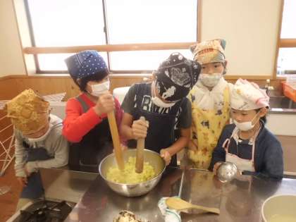 なめらかになるよう,協力しておいもを潰したので,おいしく仕上がりました。