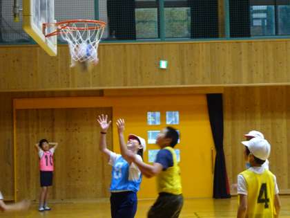 体育ではバスケットボールの学習が始まりました。シュートにつながるよう,すばやくタイミングのよい動きを目指して頑張っています。男子も女子も,みんな仲良く協力しながらゲームを楽しんでいます。