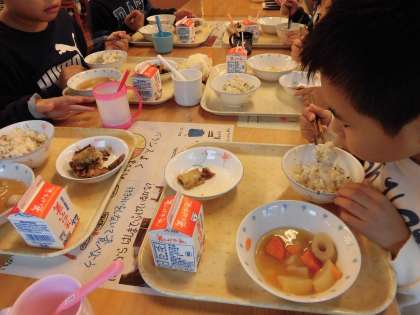 彩りのきれいな菜めしや食べると温まる関東煮を喜んで食べていました。