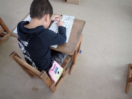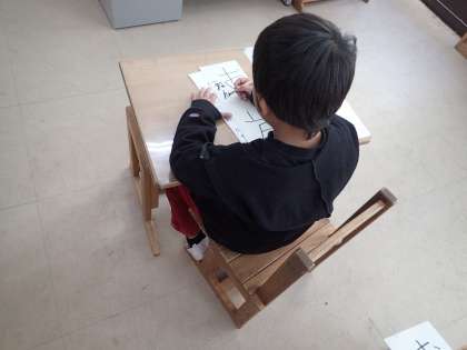 フェルトペンを使って「お正月」という字を書きました。文字の真ん中をそろえて,大きく書くことが難しかったようですが,集中して一生懸命書いていました。