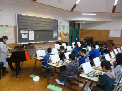 「威風堂々第1番」をリコーダーや鍵盤楽器を使って,曲想を感じながら演奏しました。その後,3つのグループに分かれて,次回に,旋律を鍵盤ハーモニカや低音楽器などを使って演奏するための話し合いを行いました。