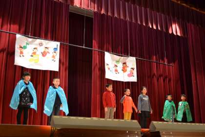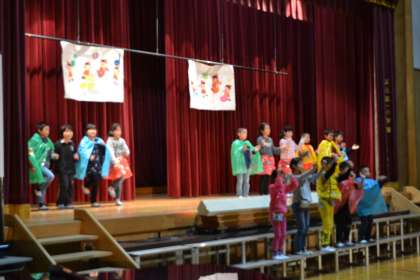 3年生は音楽の学習をもとに発表をしました。今年から始まったリコーダーの演奏や,ボディーパーカッション,ボイスアンサンブルなどいろいろなジャンルの音楽に挑戦しました。本番はたくさんの方に見守られながら,練習の成果を発揮することができました。
