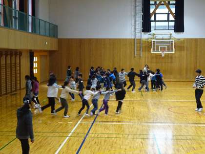 昼休みに全校遊びが行われました。本部委員会が中心となって,猛獣狩りとムカデのしっぽとりゲームをしました。遊びの中にも,低学年に対してやさしい言葉かけをしたり,順番をゆずったりする中・高学年の姿が見られました。1年生から6年生まで,みんな笑顔でにぎやかに楽しむことができました。
