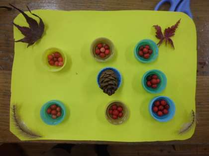 入れ物との組み合わせ,色合いなどを見て,素敵に見えるように飾りました。