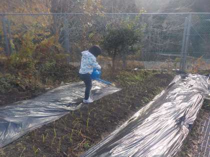 来年にむけてタマネギの苗を植えました。大きくなるように草引きと水やりを頑張っています。