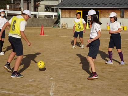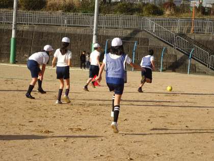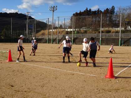 体育の授業ではサッカーに取り組んでいます。寒さに負けず,男女仲良くボールを追いかけています。