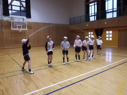 体育では,からだほぐしの運動をしました。最後にみんなで大縄跳びをしました。声を合わせて楽しくジャンプしていました。