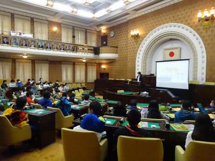 市会議場と平和ミュージアムに見学に行きました。市会議場では,市会の仕組みや役割についてていねいにお話をしていただきました。特別に議長席にも座らせていただき歓声があがりました。また,平和ミュージアムでは,戦争の歴史について理解を深めました。「今も世界には戦争によって苦しんでいる人がいる。自分たちの手で,平和な世界をつくらなくてはならない」という言葉に,真剣な表情でメモをとる姿がみられました。