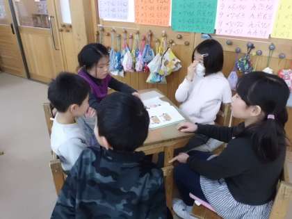 話し合いの仕方の学習をしています。議長を決め,順序良く意見を出し合っていました。