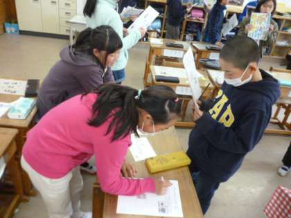 「時間割を作ろう」をめあてに,子どもたちは英語でコミュニケーションしながら,時間割作成ゲームをしました。お互いに「What subject」と言いながら,相手の教科をききとります。すべてのマスがうまったら,完成です。最後の答え合わせは,目を輝かせながら,進んで確認していました。