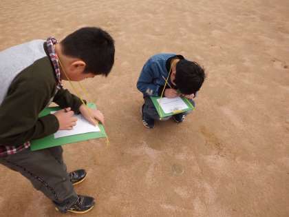 地面にしみ込んだ水は,どこにいったのか調べました。地面に置いたシャーレがくもり水滴がついたことを確認しました。
