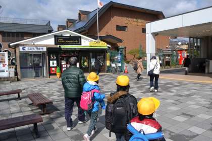 3月6日に京北第三小学校のお友達とお祝い社会見学に行きました。嵐電を使って天神川駅から嵯峨駅まで移動し,トロッコ嵯峨駅へ徒歩で向かいました。トロッコ嵯峨駅の中をゆっくり散策してから列車に乗り,景色を楽しみながらトロッコ亀岡駅まで行きました。