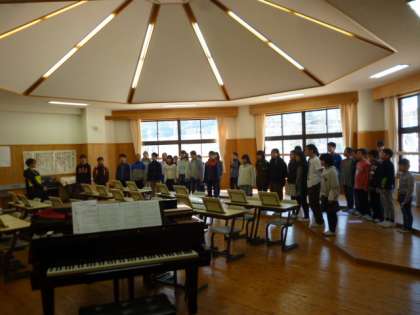 この日は6年生と合同で「旅立ちの日に」を練習しました。気持ちをこめて歌うことの大切さや,上と下のパートにわかれてのポイントなど,卒業式を盛り上げるために,真剣に心をこめて歌う姿勢が見られました。