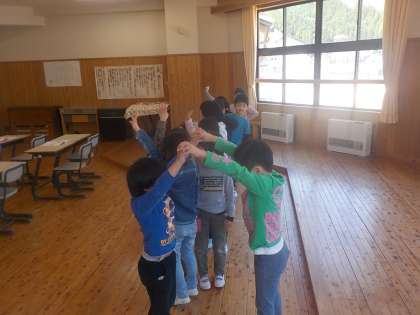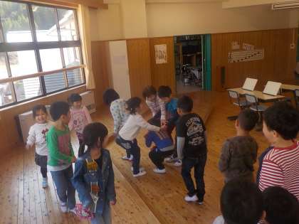 音楽の時間,いろいろな国のあいさつが出てくる「メロディー」という曲を歌いました。「ロンドンばし」の曲で歌遊びもしました。