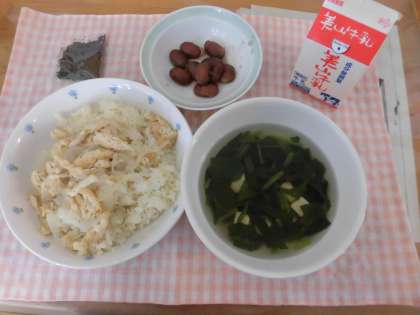 連休間の給食は,比較的ごはんが食べやすいどんぶりです。