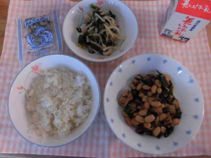 肉みそいためはごはんに合う給食の定番のおかずです。