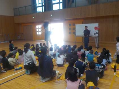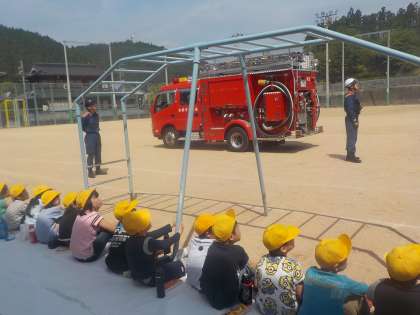 5月1日に合同学習がありました。消防車や救急車の絵を細かい所までよく見て描きました。パスの色を混ぜて窓やミラーをぬりました。4時間目には,しっぽとりゲームをしました。他の学校の友達にも声をかけながら,楽しく交流することができました。