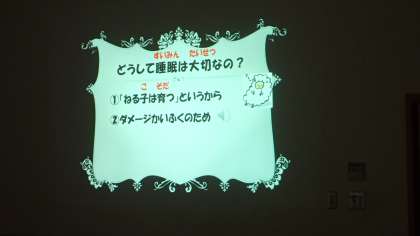 朝会で「すいみん」のお話をしました。