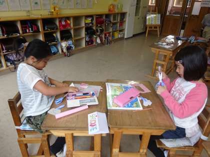 係活動が活発になってきました。生き物のポスター作りや季節の飾り作り,学級のみんなを驚かせようと手品の練習をしている係もあります。朝の会・帰りの会で,それぞれの係から活動のお知らせや楽しいイベントの案内をしています。