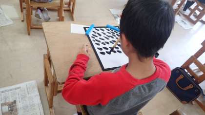 3年生になって初めて毛筆での書写の学習を行いました。準備の仕方,片付けの仕方などを中心に学習しました。その後,点を書く練習をしました。どうしたら,きれいな点が書けるか考えながら,一生懸命取り組んでいました。